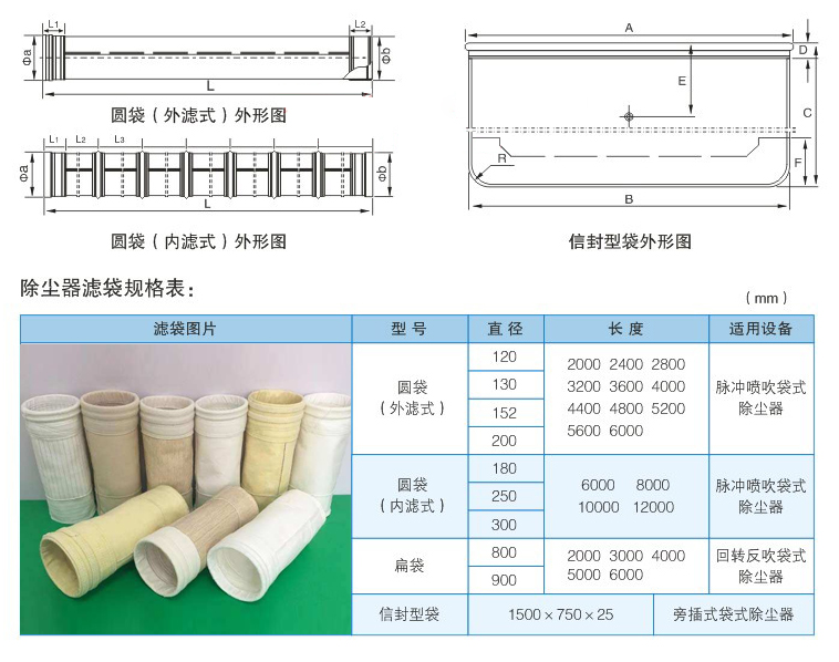 濾袋是決定袋式除塵器除塵效率和工作溫度的關(guān)鍵元件,更換濾袋的費用又是袋式除塵器的主要維修費用。濾袋工作壽命關(guān)系到除塵器的運行狀態(tài)和成本。因此,選擇合適的濾料和設(shè)計合理的結(jié)構(gòu)就尤為重要了。
