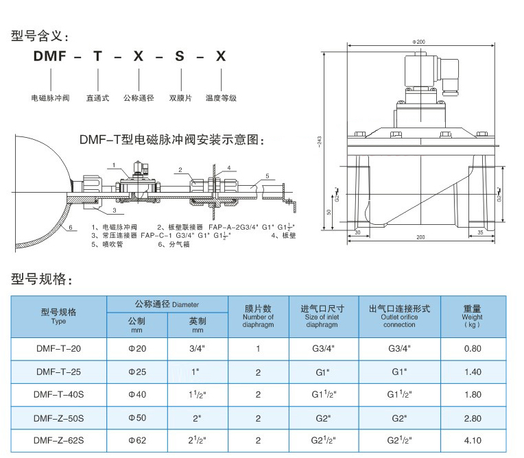 DMF-T直通式電磁脈沖閥
