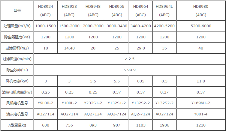 HD型單機(jī)袋式除塵器有六種規(guī)格: